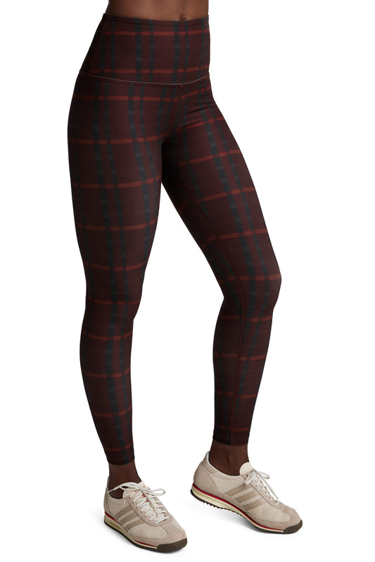 CAUGHT IN THE MIDI SPACEDYE LEGGING DARK CHERRY PREPPY PLAID