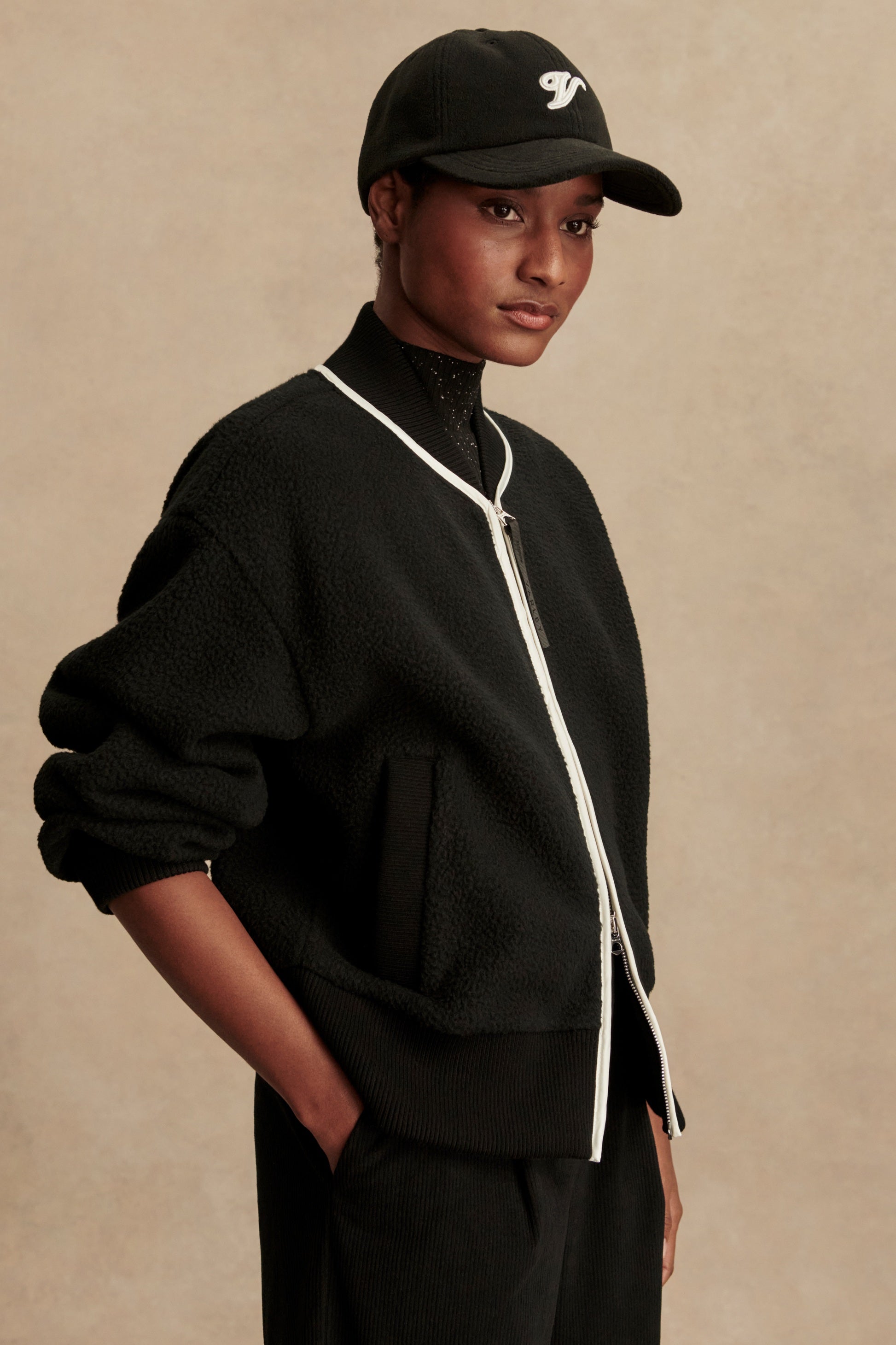Soft fleece in a classic bomber shape, the Hansley Jacket is a versatile layering piece from apple orchards to outdoor sporting events. Crafted from soft fleece with a chunky ribbed collar and cuffs, contrast trim piping, two-way gold zipper, and side pocktes.